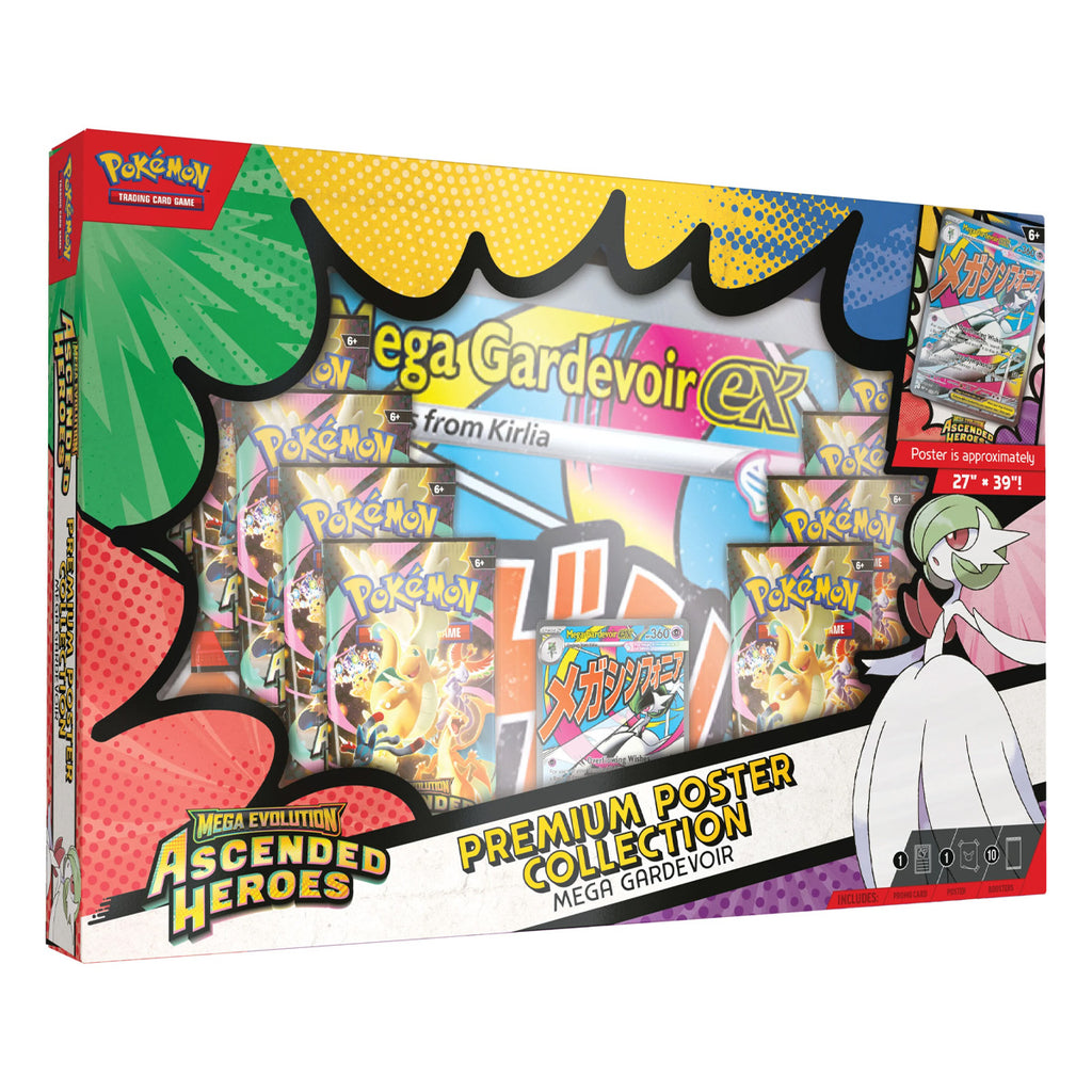 With strong attacks and big HP, Mega Lucario ex and Mega Gardevoir ex break through boundaries in battle! Team up with one of these powerful Mega Evolution Pokémon ex as a full-art foil promo card, then find even more Pokémon inside a stack of 10 booster packs from Mega Evolution — Ascended Heroes. You’ll also get a large poster showing off Mega Lucario or Mega Gardevoir and other Pokémon featured in this special expansion.