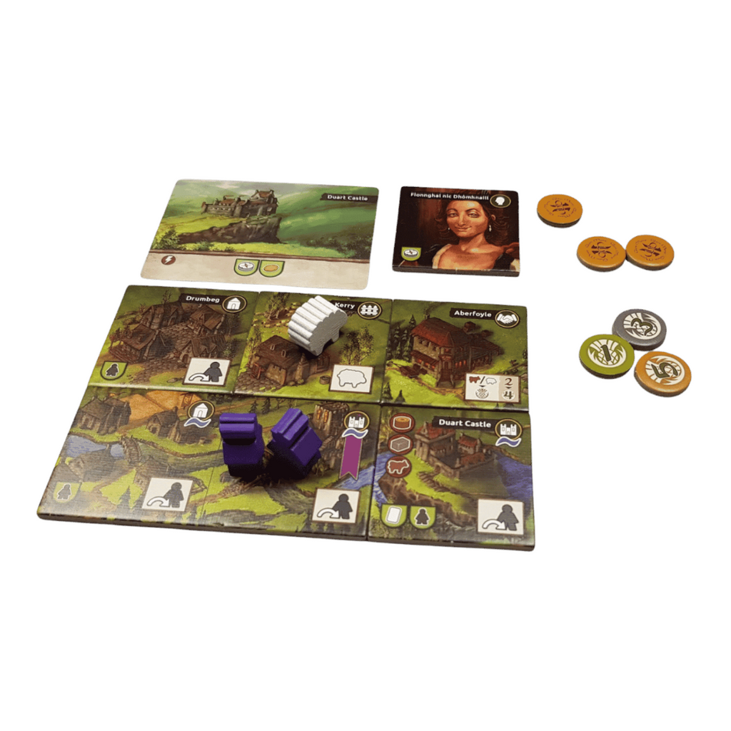 In Glen More II: Chronicles, each player represents the leader of a Scottish clan from the early medieval ages until the 19th century, a leader looking to expand their territory and wealth. The success of your clan depends on your ability to make the right decision at the right time, be it by creating a new pasture for your livestock, growing barley for whisky production, selling your goods on the various markets, or gaining control of special landmarks such as lochs and castles.