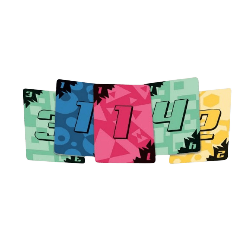 In The Lie, all the cards lie! The cards show numbers from 1 to 4, and they are in four different colors. However, when you turn each card over, you will find something has changed: either its color or number.