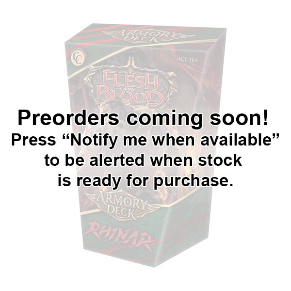 Rhinar, the apex predator returns to reclaim his place at the top of the food chain! Armory Decks include new card designs in addition to foundational cards featured in tournament winning Rhinar decks. An ideal way to pick-up and play at weekly Armory Events running in local game stores across the world! Armory Deck Rhinar contains a 60-card deck, plus hero, weapon, and equipment cards.