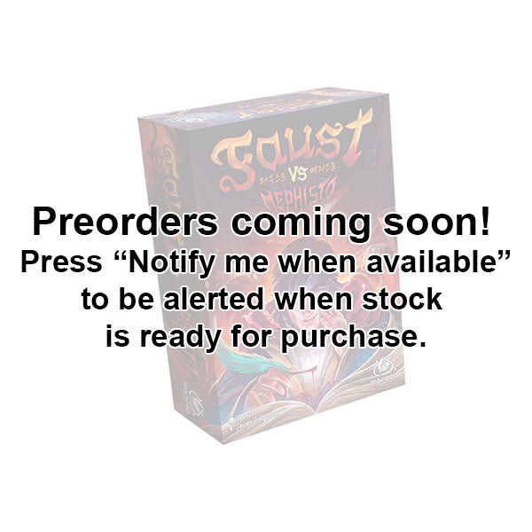 Faust vs Mephisto is a two-player trick-taking game where Faust must resist Mephisto's temptations and explore four domains for two rounds.