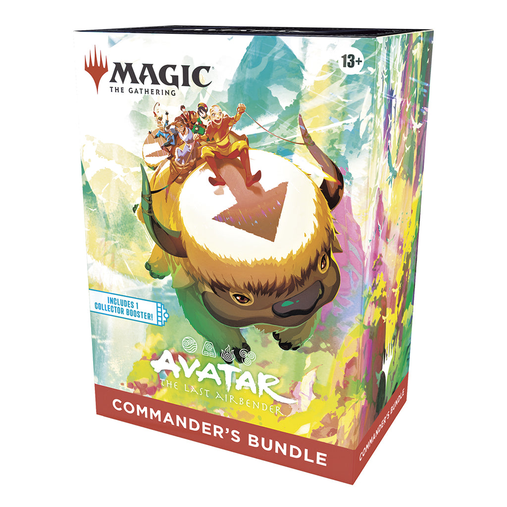 This masterful bundle unites all the greatest elements for Avatar: The Last Airbender fans, boasting nine Play Boosters, gorgeous full-art basic lands, and a Collector Booster packed with rares and/or mythic rares, foils, and other stylish surprises. But that's not all—Commander players will find Avatar-themed staples Sol Ring, Swiftfoot Boots, and Arcane Signet, plus two classic spells from a selected list of ten that are perfect for any commander's arsenal.