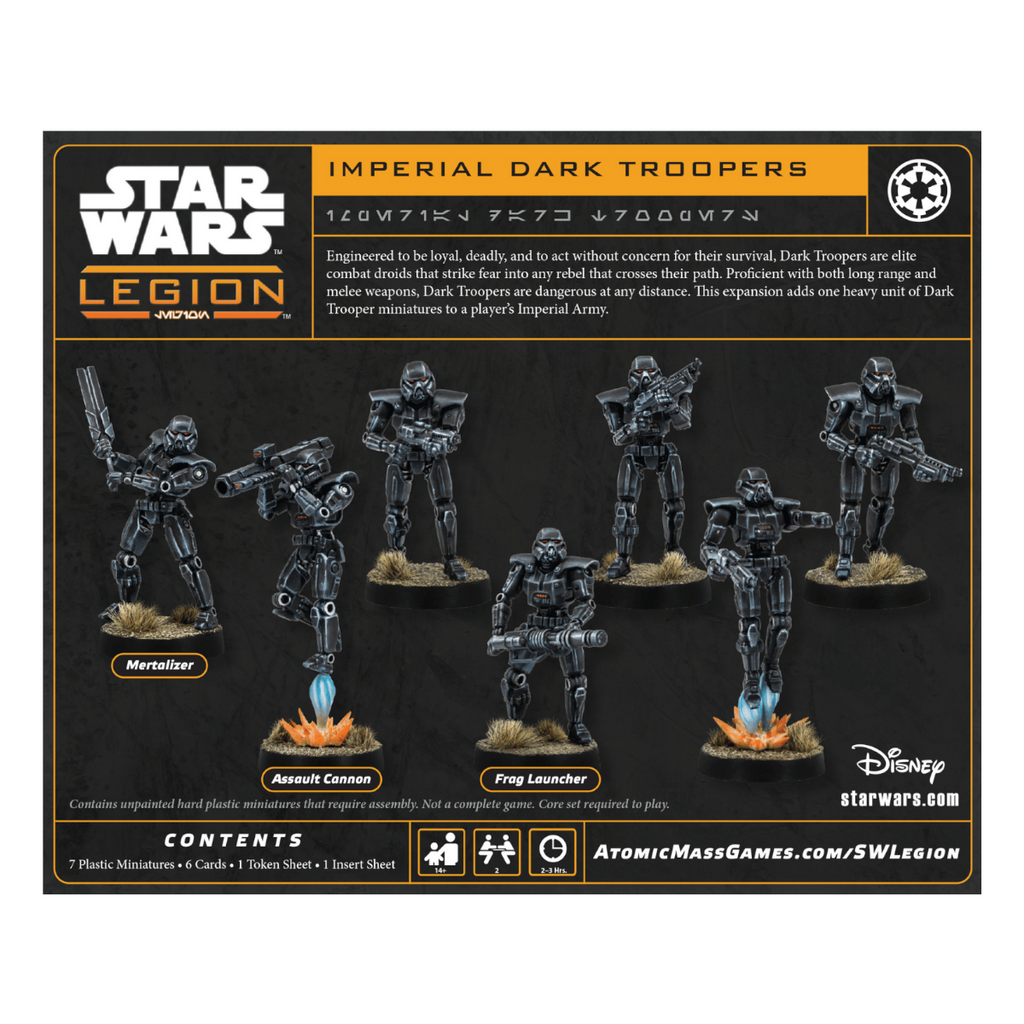 Dark Troopers are a Galactic Empire trooper unit that fills the Heavy Support slot in army construction. This unit boasts several abilities that make them unique among other trooper units, including the ability to activate twice in a single Round and the option to take multiple heavy weapons in a single unit.