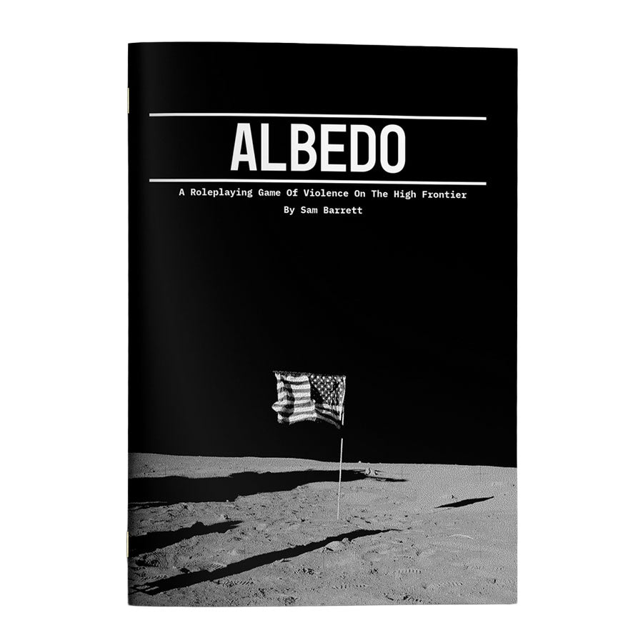 ALBEDO is a tabletop roleplaying game about dangerous people doing dangerous work on the most dangerous fringes of humanity. One player will take on the role of the referee, determining the jobs, setting the stakes, and moving the characters. The rest will take on the role of mercenaries waging a careful, delicate war between multiple competing factions on the moon's surface.