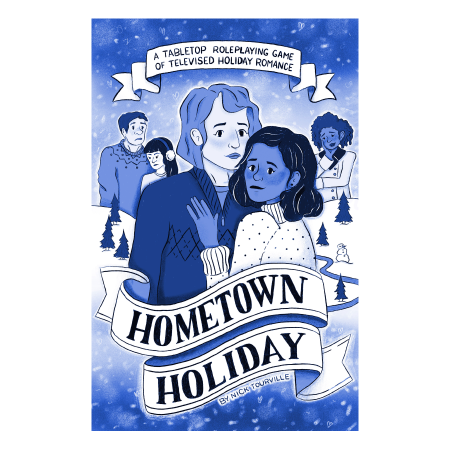 Hometown Holiday is a comedy/romance roleplaying game for 2-5 players and one GM. Players chose from one of six character classes inspired by tropes from Hallmark and Netflix holiday movies and compete to woo their shared love interest and complete secret objectives! Will you play as uptight businessman who needs to learn the meaning of Christmas? Maybe you run a quaint coffee shop on Main Street and find yourself smitten with a handsome prince! But wait, you forgot to make latkes for the PTA meeting!