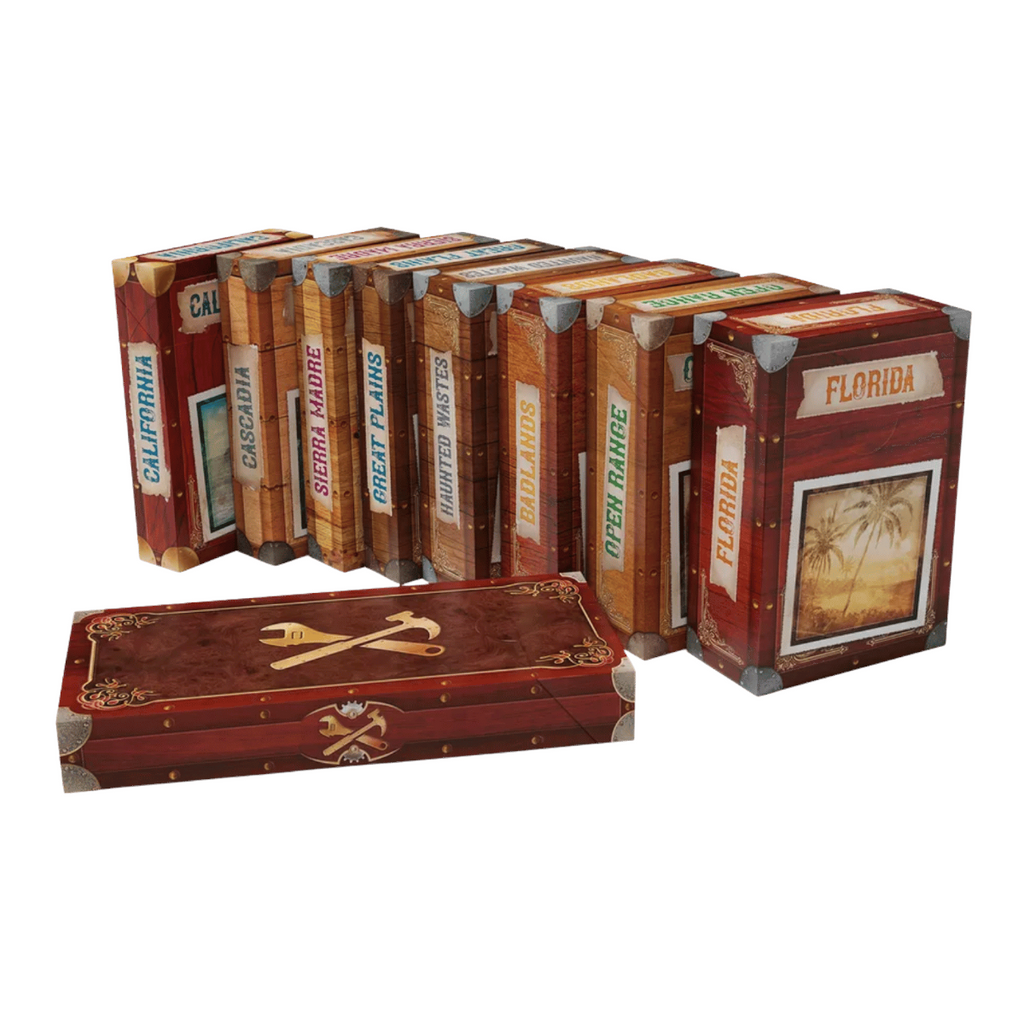 In Ticket to Ride Legacy: Legends of the West, players embark on twelve journeys across North America as 19th century pioneers. The campaign begins on the East Coast, with players working their way to the West from one adventure to the next, meeting challenges along the way. As in Ticket to Ride, completing your tickets will remain your primary goal, but you will need to develop other skills if you hope to overcome the unexpected events and your resourceful rivals. Game after game, route after route, you will continuously fill your vault with earnings. As the story progresses, you will open frontier boxes that unlock new rules, content, and many more surprises.