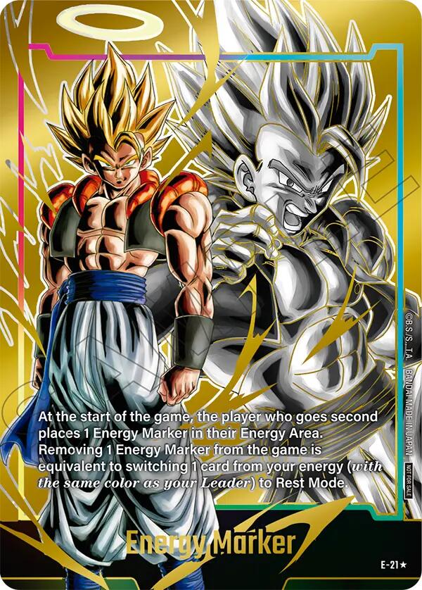 At the start of the game, the player who goes second places 1 Energy Marker in their Energy Area. Removing 1 Energy Marker from the game is equivalent to switching 1 card from your energy (with the same color as your Leader) to Rest Mode.
