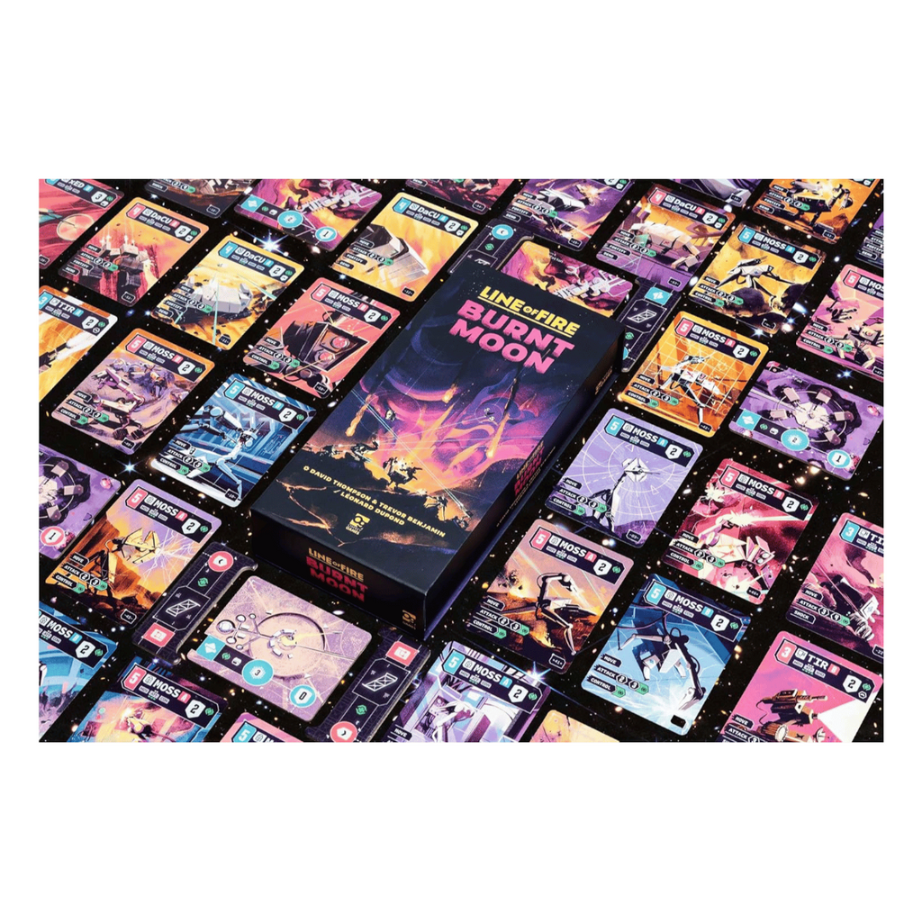 Line of Fire: Burnt Moon is a standalone two-player card game that fuses the lean deck-building of the award-winning Undaunted series with fast-paced lane battling. Sharp decision-making and clever positioning combine in a nail-bitingly tense, endlessly replayable, and lightning-fast experience.
